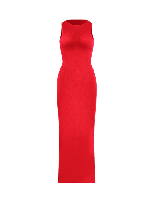 Bodycon Shapewear Midi Slit Dress with Short Sleeves